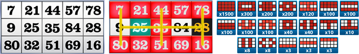 • Payout is issued whenever player completes any predefined prize pattern.